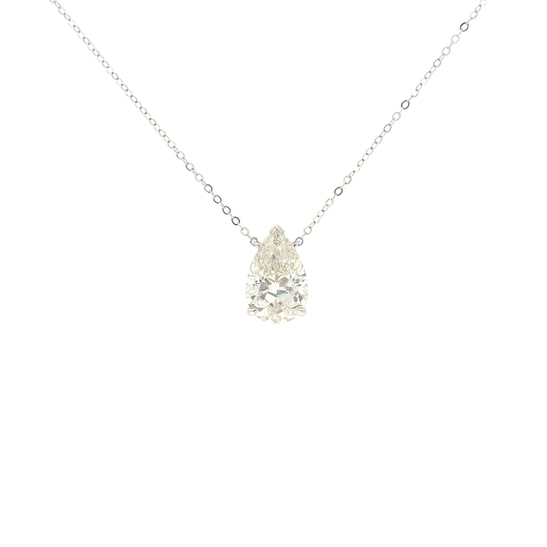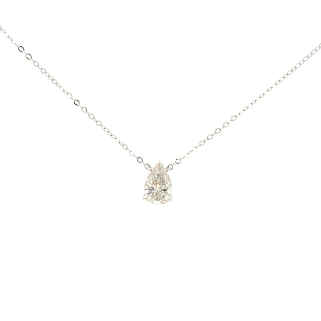 A timeless pear-cut diamond, elegantly suspended in a delicate setting.