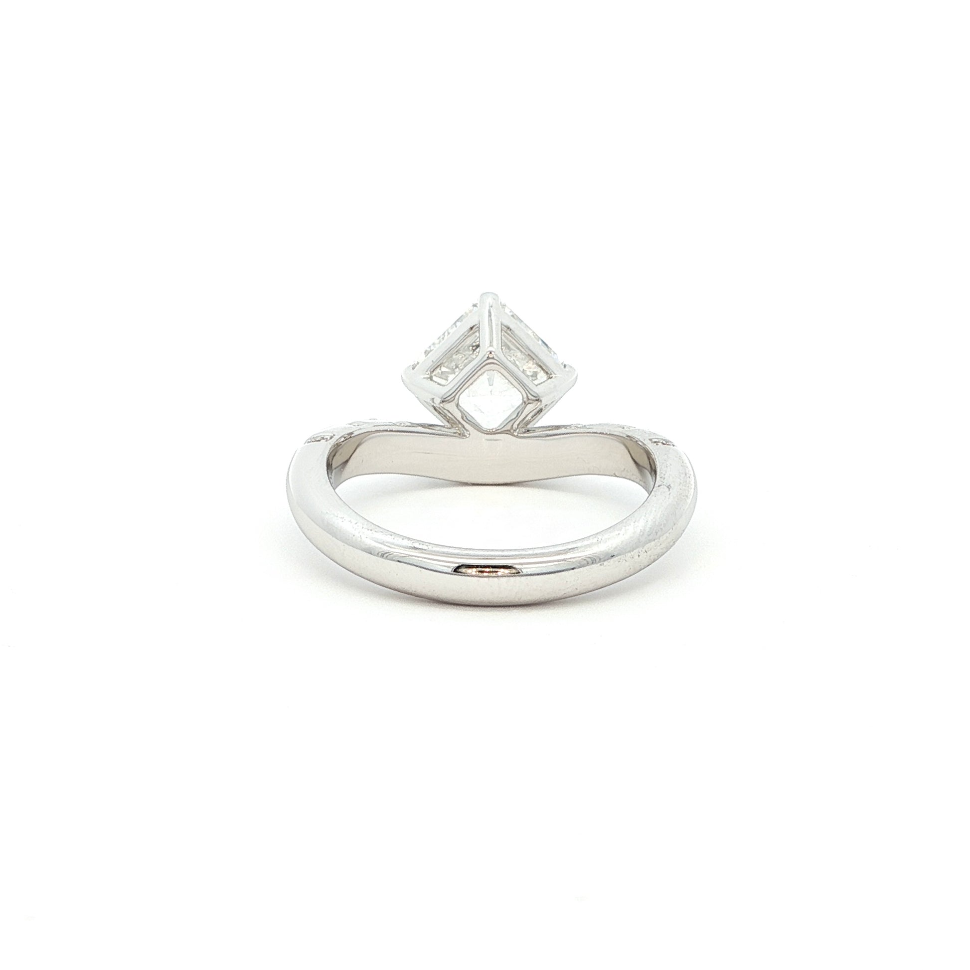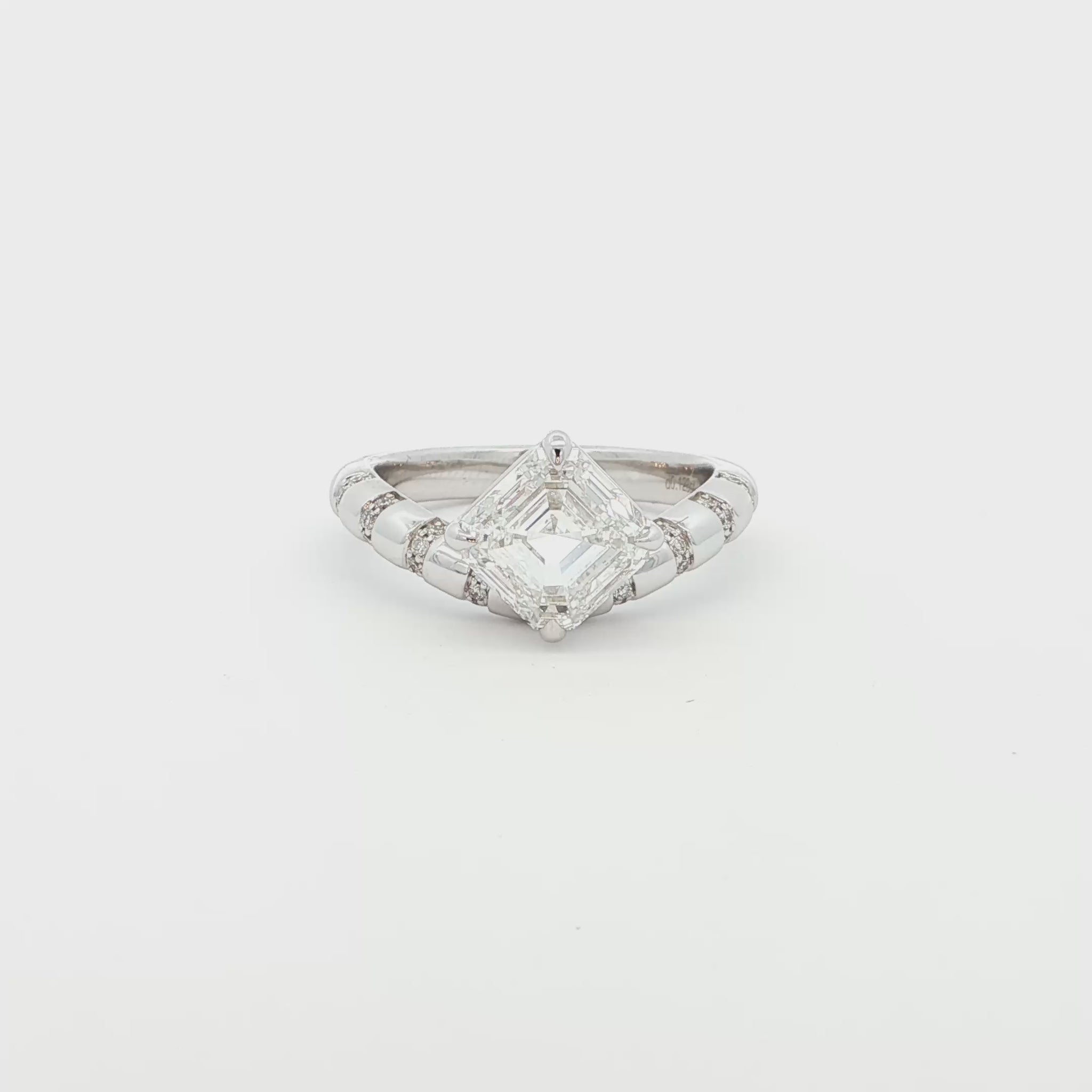 This unique 18K White Gold ring features an east to west Asscher lab-grown diamond, accented by pavé set diamonds along the band. Its innovative design and timeless elegance make it a standout piece, perfect for any occasion or as a statement of personal style.