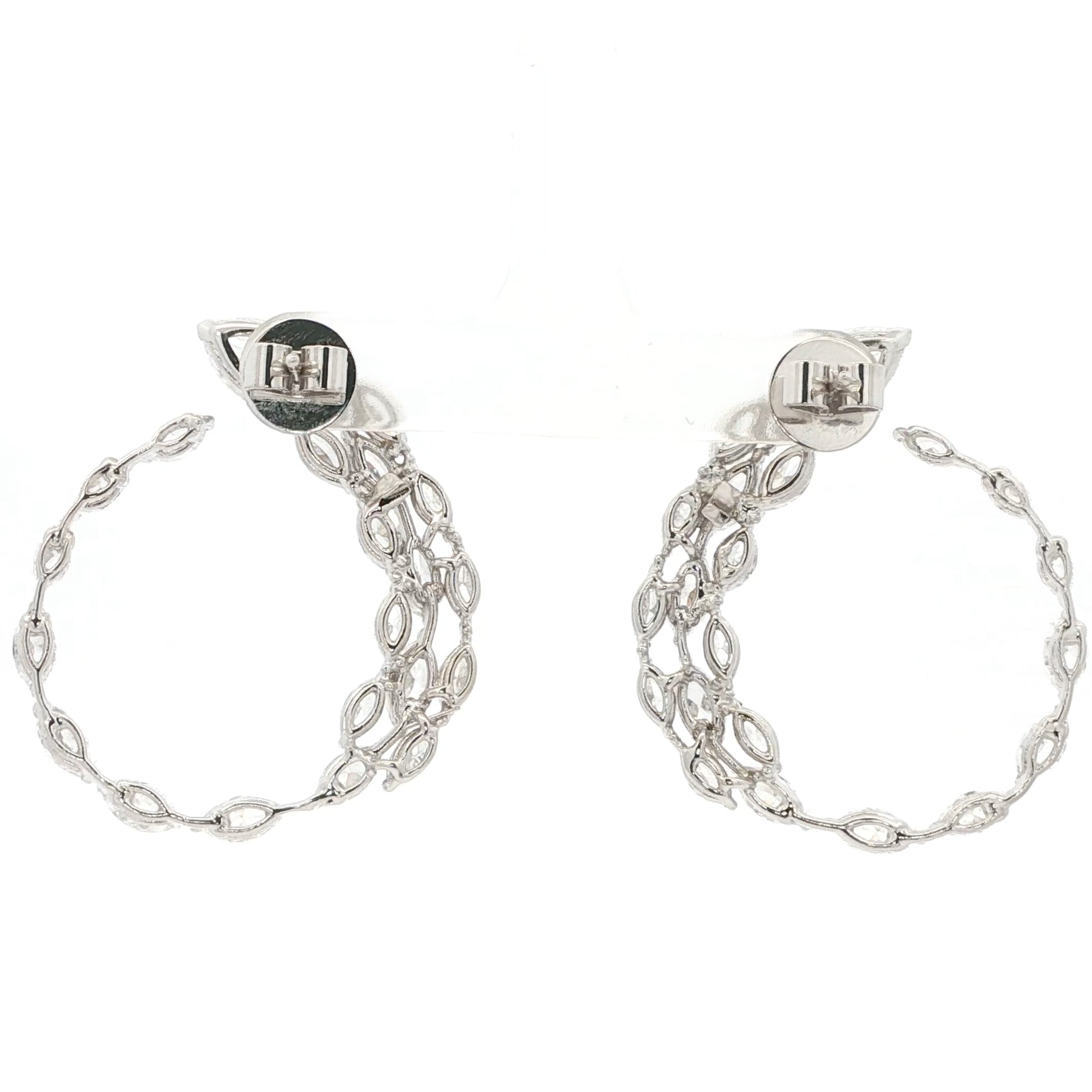 Discover the allure of these stunning serpent hoop earrings, meticulously crafted in 18K white gold. Each earring features a delicate arrangement of dazzling pear and marquise-cut diamonds, forming a captivating serpent-inspired shape. The exquisite structure of these earrings catches the light beautifully, making them a striking addition to any jewelry collection.