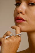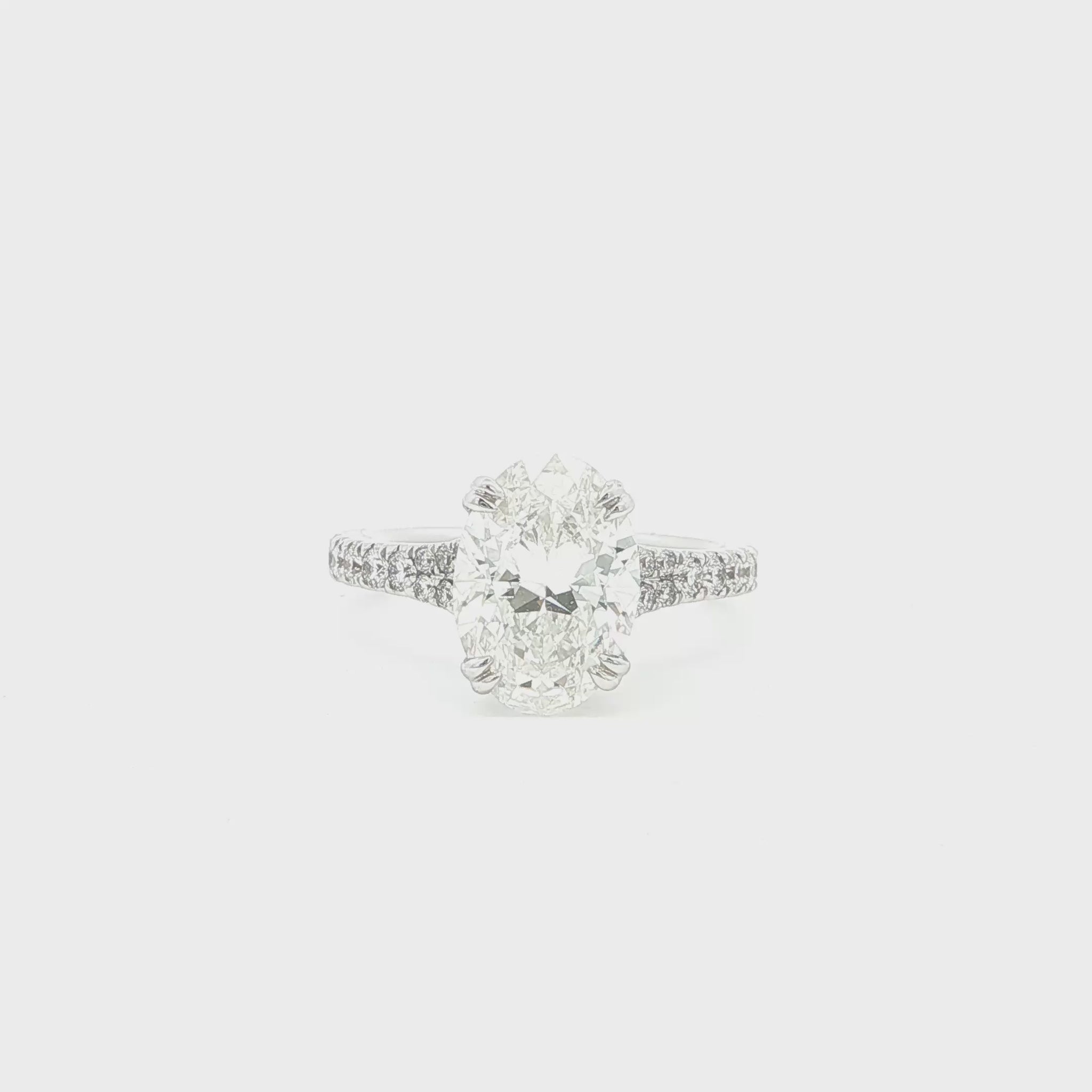 This captivating engagement ring features a stunning Oval lab-grown diamond at its centre, complemented by a pavé set accent band in 18K White Gold. Its timeless design and radiant sparkle make it the perfect symbol of love and commitment, destined to be cherished for a lifetime.