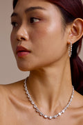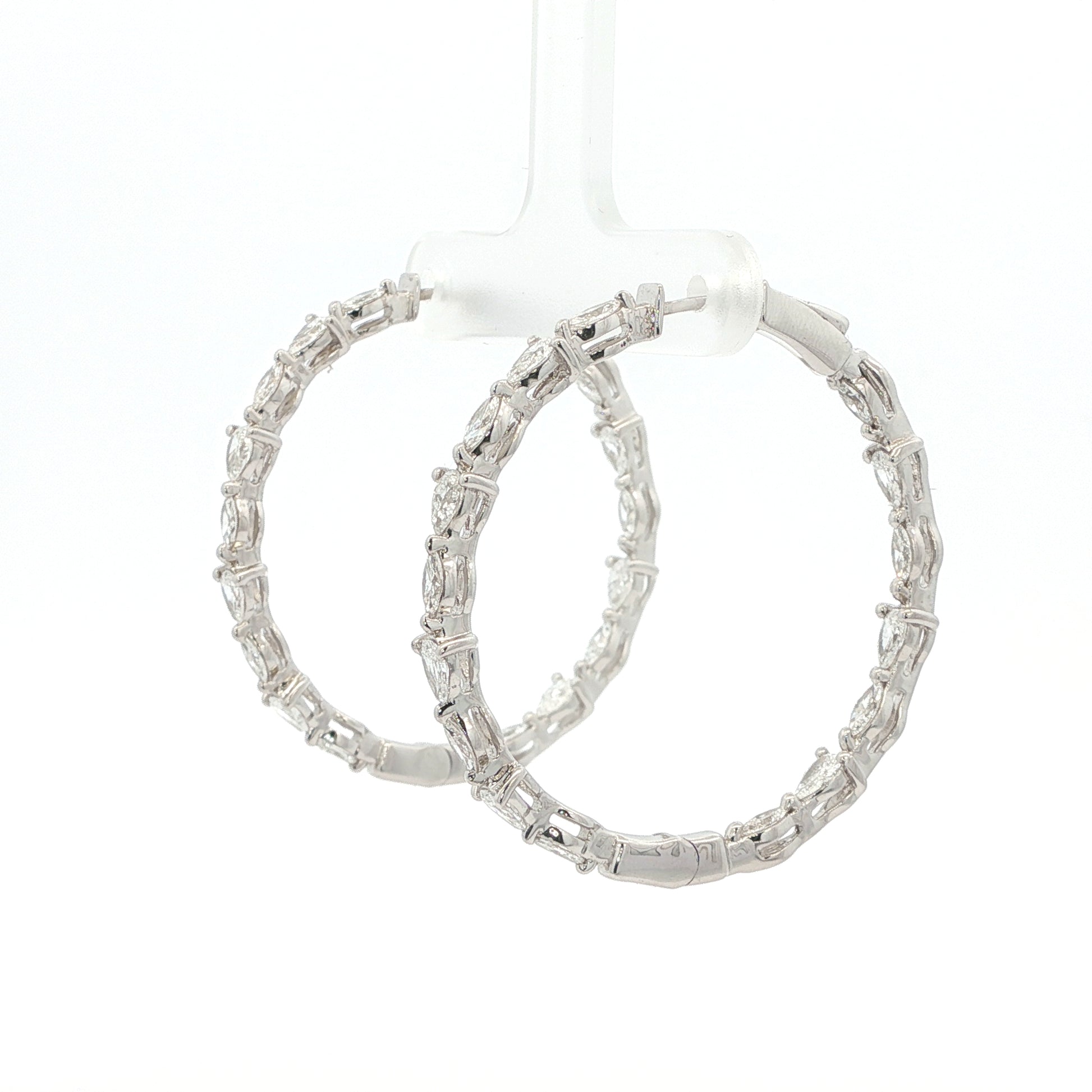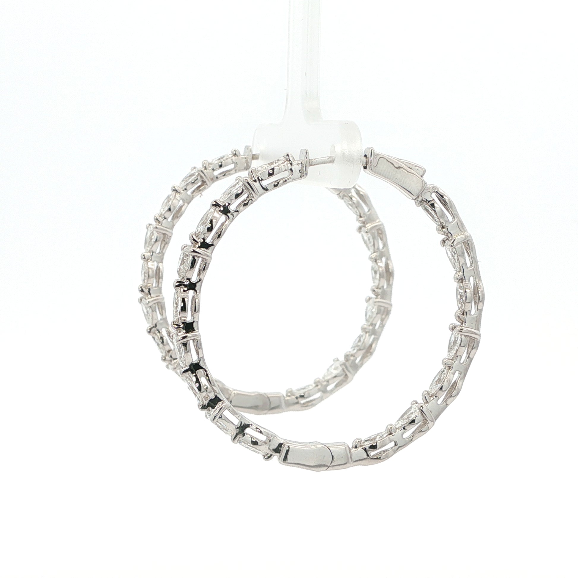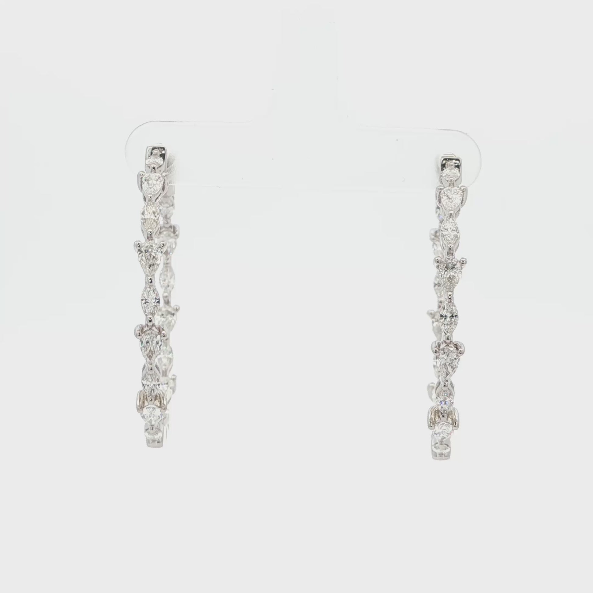 These stunning hoop earrings are crafted in 18K white gold and showcase an exquisite alternating pattern of marquise and pear-cut diamonds. The eternity style creates a seamless line of diamonds that captures light beautifully from every angle, making these earrings a perfect blend of delicate design and bold elegance.