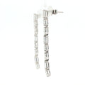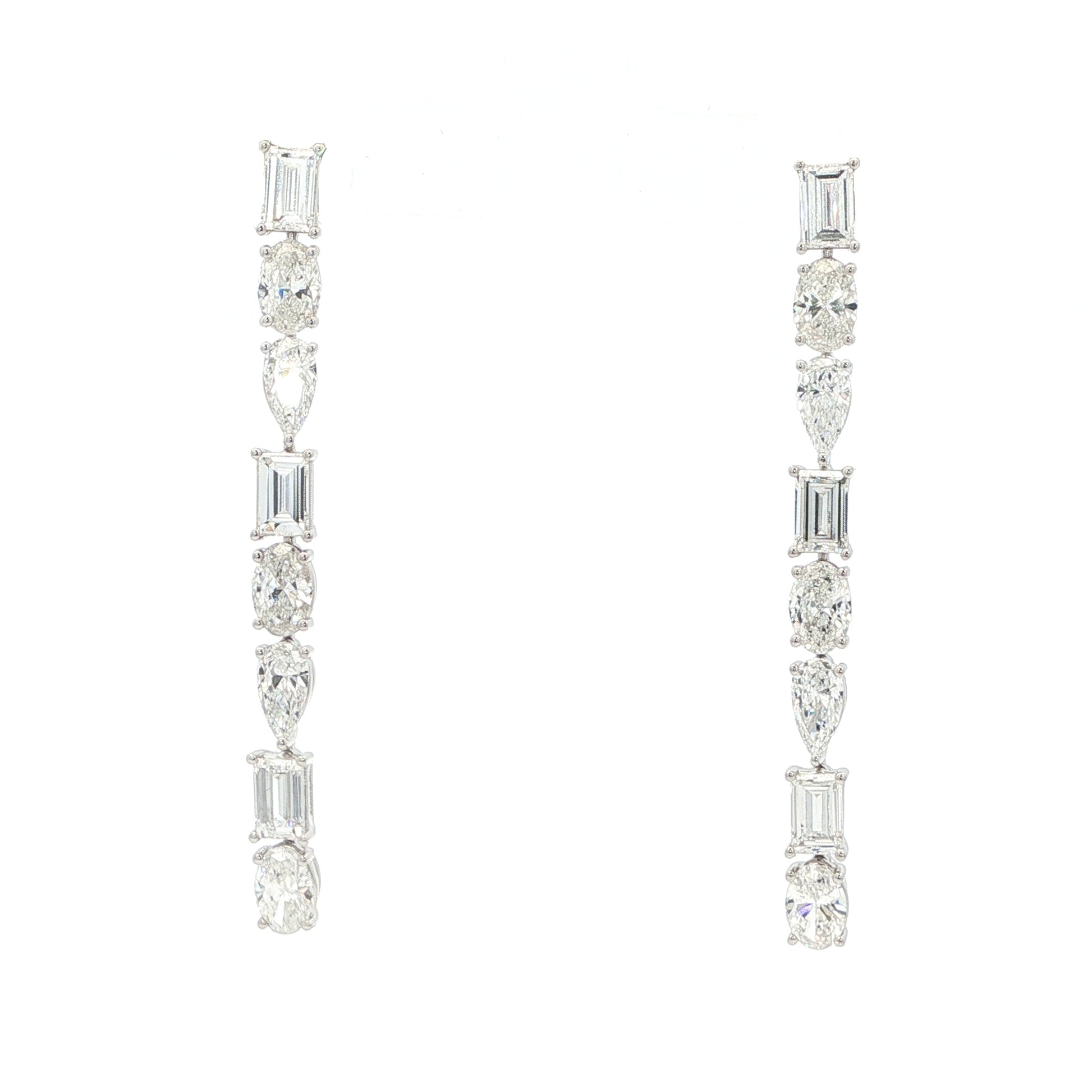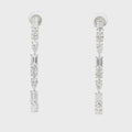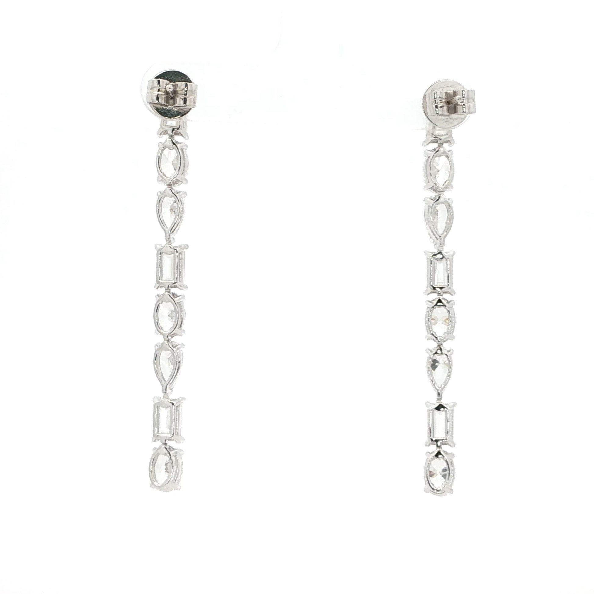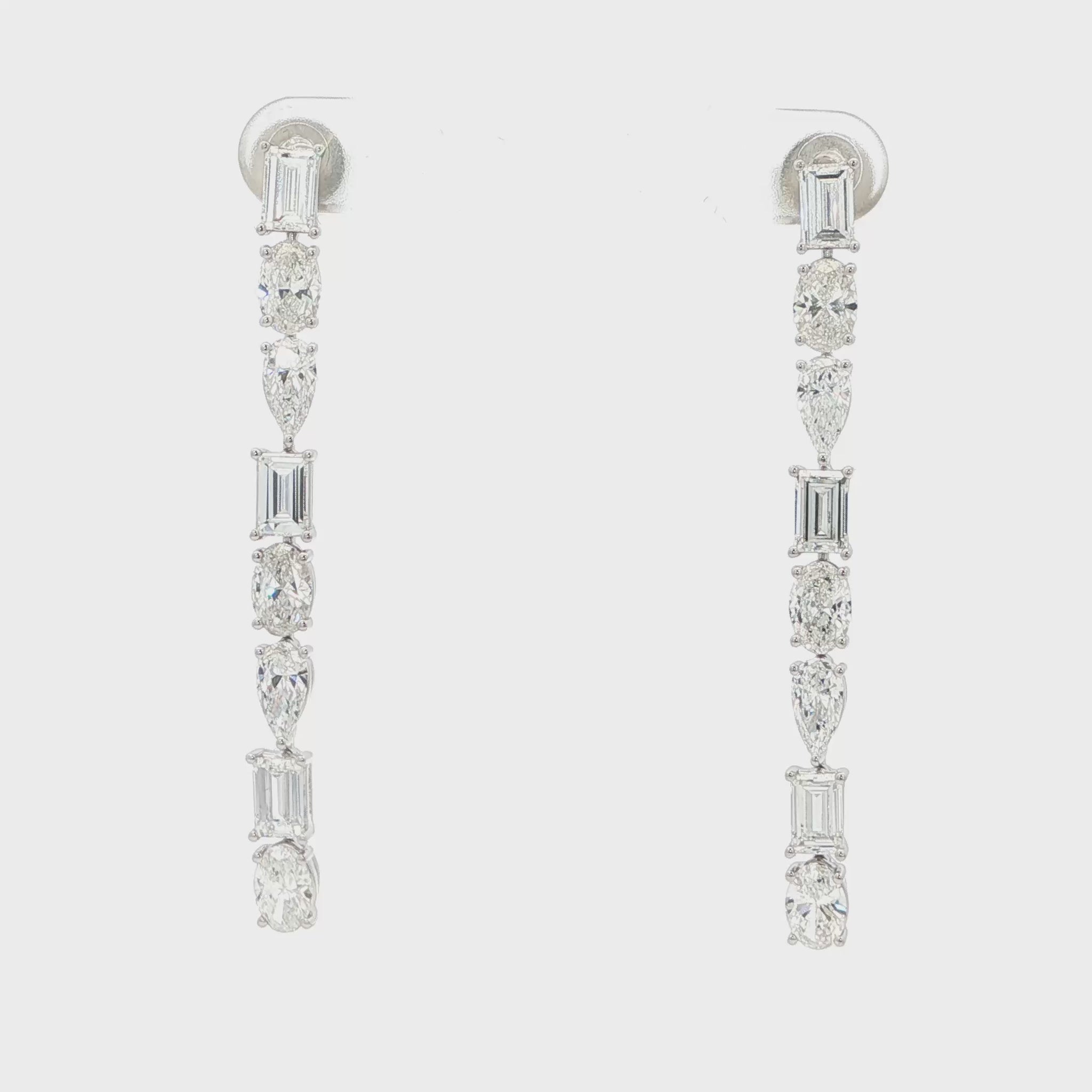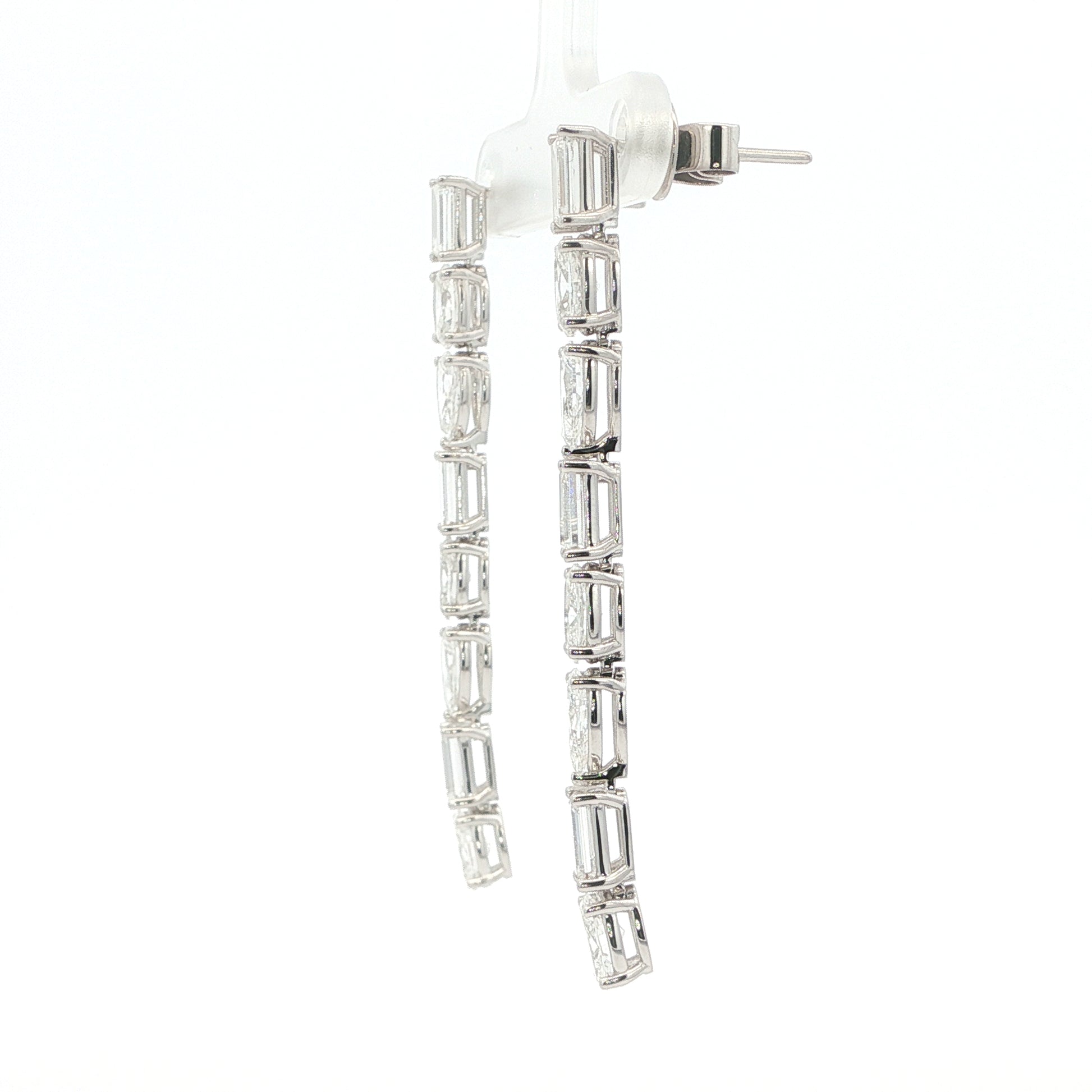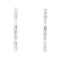 This striking pair of long earrings features an elegant arrangement of baguette, pear, and oval-cut lab-grown diamonds in an alternating pattern. Crafted in 18K white gold, these statement earrings are designed to make an impression, combining modern elegance with timeless beauty for any special occasion.