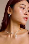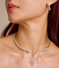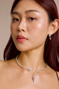 This captivating statement necklace showcases a seamless line of pear-cut diamonds cascading around the neckline, with intricate clusters of pear-cut diamonds forming flower-inspired shapes on either end. Crafted in 18k white gold, this enchanting piece adds a touch of nature's beauty to any outfit.