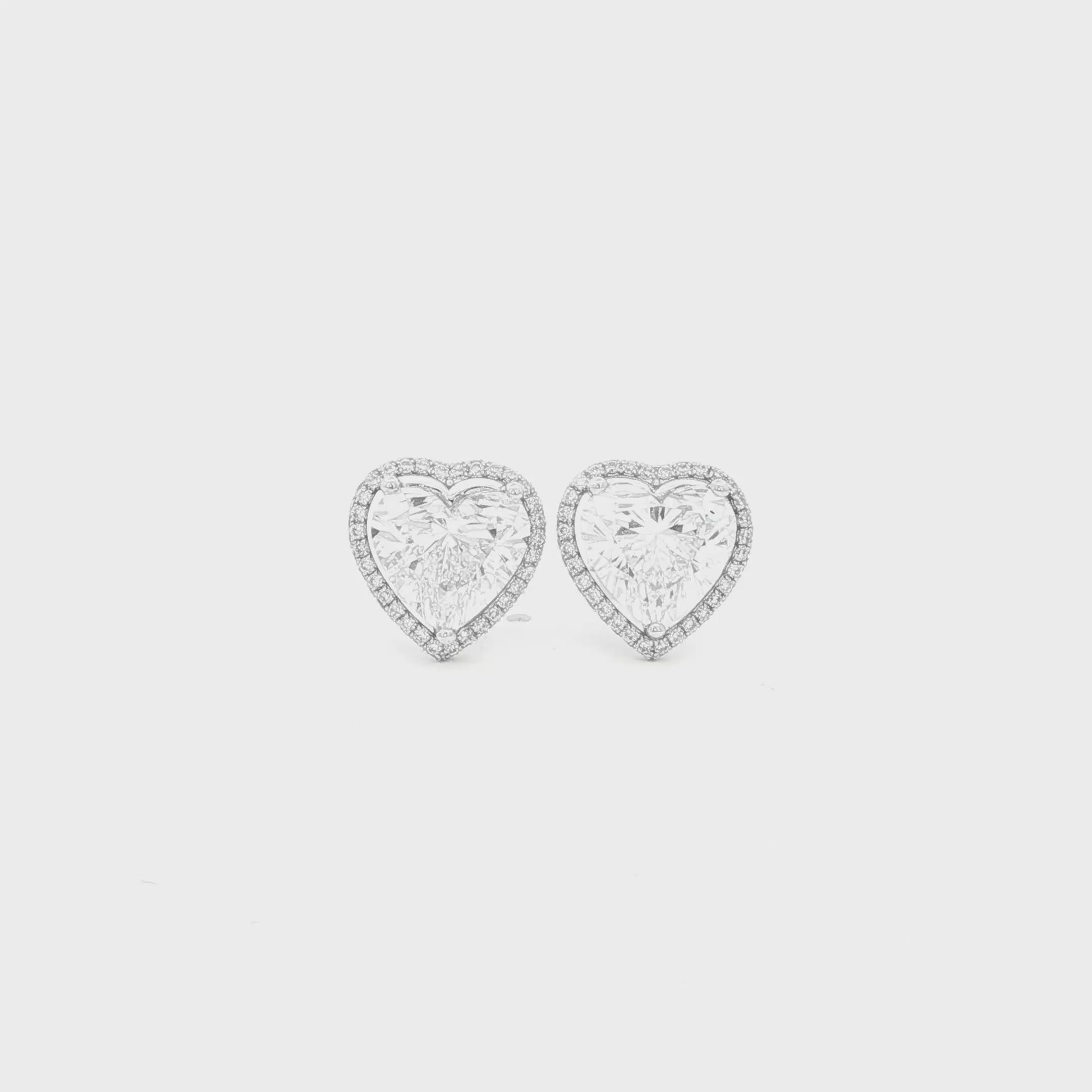 Introducing our Double Halo Heart Studs, expertly crafted in 18K White Gold. These stunning earrings showcase a brilliant heart-shaped lab-grown diamond at the center, surrounded by a dazzling halo of smaller diamonds, radiating elegance and sophistication.