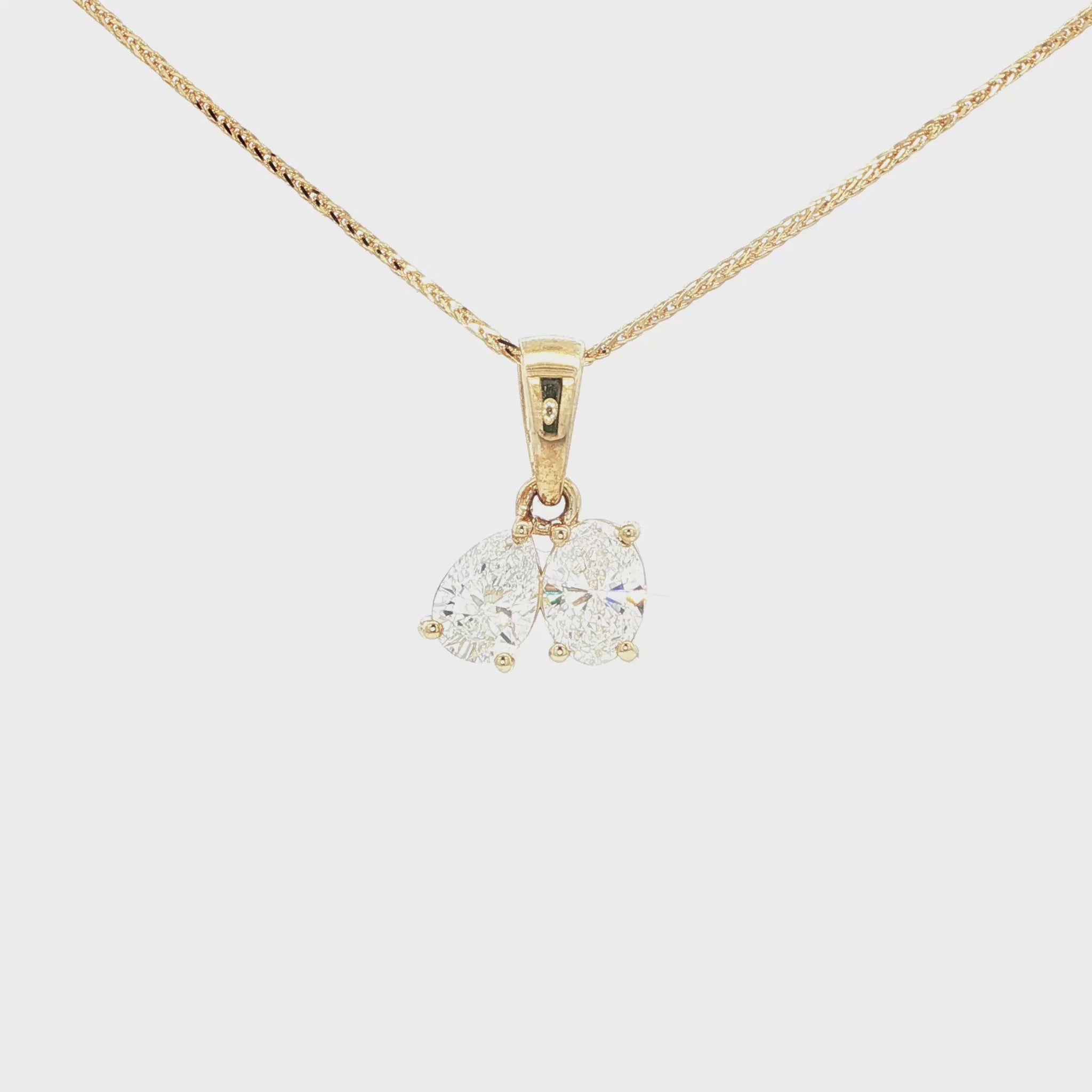 Crafted in 10K Yellow Gold, this elegant Toi et Moi Pendant showcases stunning pear and oval-cut lab-grown diamonds. A captivating dual design, symbolising love and connection with timeless sophistication.